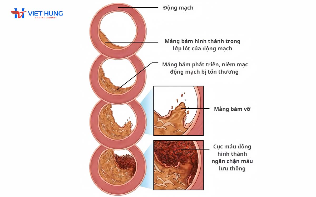 Các vi khuẩn này không tồn tại đơn lẻ mà hình thành mảng sinh học (biofilm), giúp chúng bám sâu vào thành mạch và né tránh hệ miễn dịch. Khi biofilm bị bong ra, chúng có thể di chuyển đến những vùng mảng xơ vữa yếu, khiến mũ sợi (fibrous cap) bị nứt vỡ – nguyên nhân trực tiếp gây cơn nhồi máu cơ tim cấp tính.